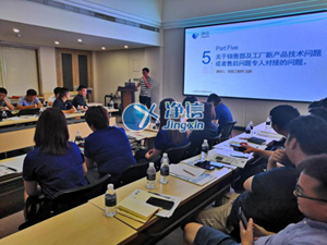凈信研發(fā)部工程師沈工也在會上就銷售部及工廠新產(chǎn)品技術問題以及售后專人對接問題進行了講解和討論。公司在研發(fā)新產(chǎn)品的同時也非常重視產(chǎn)品使用當中所出現(xiàn)的技術問題和售后問題。凈信目前在全國擁有十幾個辦事處,對于售后這一塊,我們也是非常有信心的。能夠及時有效的幫客戶解決問題。