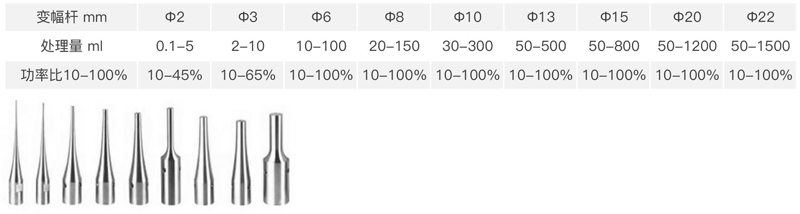3.超聲探頭采用美標TC4材質的高純鈦合金,探頭形狀:錐形、鞭節形,發波形式:垂直超聲。